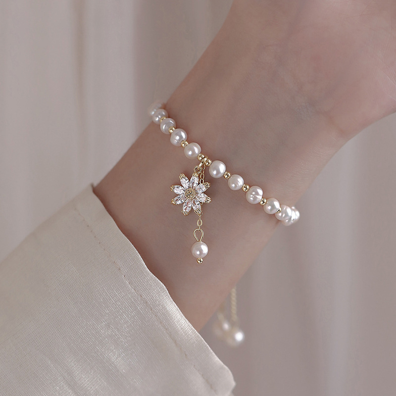 Pearl zircon flower bracelet